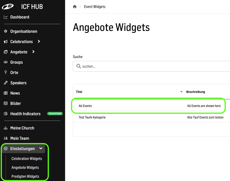 We use the ICF Hub to manage and store central data. You may have wondered: How does this data actually show up on the ICF Website? → That’s what Widgets are for!