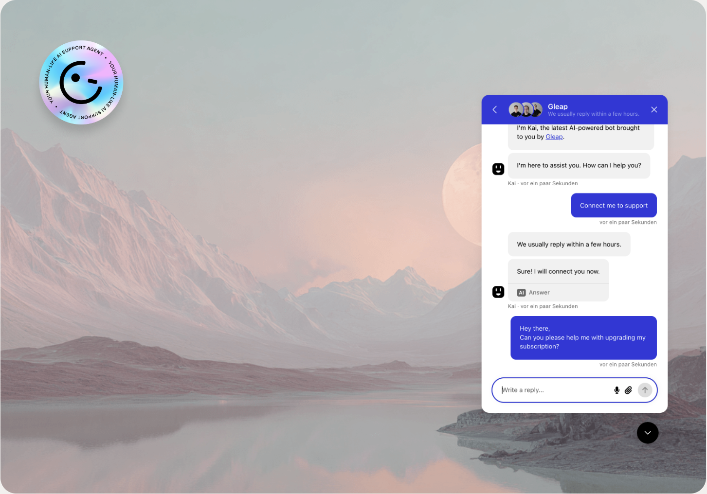 The chatbot runs on Gleap, a company based in Vorarlberg, Austria. (https://www.gleap.io/)