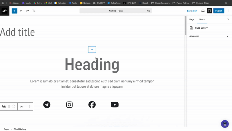 You can easily add different content elements such as Spotify, YouTube/Vimeo videos.