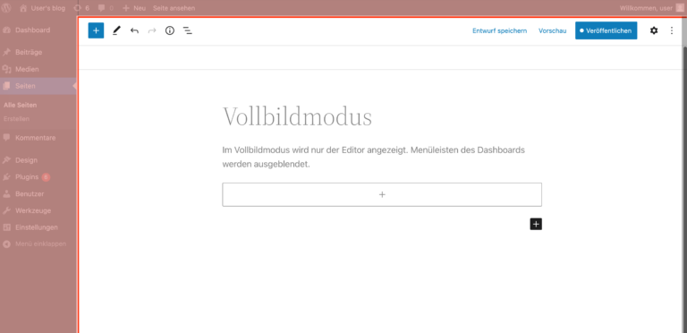 By default, the editor is displayed in full-screen mode. This means that all menu bars on the dashboard are hidden. This view is particularly recommended for concentrated work. If you want to have access to other areas of the dashboard at any time, you can simply deactivate full-screen mode.