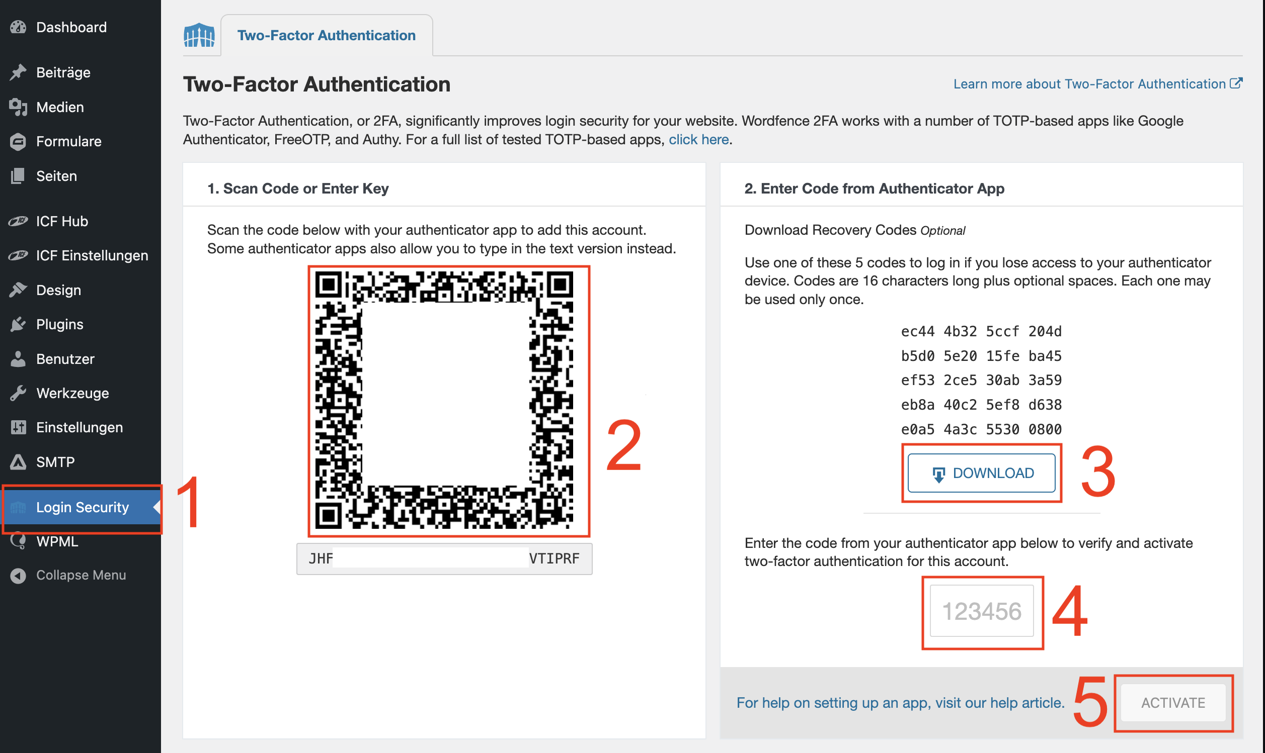 Then scan the displayed QR Code with your Password Manager & 2FA app